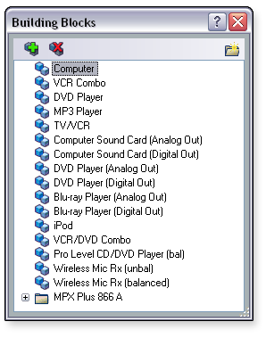 Extron building blocks are a quick configuration tool that can significantly reduce device configuration time. A building block is a collection of processor and gain settings for a particular portion of the signal chain. This allows configuration of an entire mic input, line input, virtual bus return, or line output channel with just two clicks. A comprehensive set of preconfigured building blocks is placed on your computer system when you install DSP Configurator. If you are unfamiliar with DSP processing, the provided building blocks may give you all that you need for complete configuration of your Extron DSP product. The preconfigured building blocks can also be used as a starting point, giving you a basic device setup while staging an installation, then fine-tuning the system during commissioning in the field. Building blocks can be modified, then saved, allowing you to create a customized set of tools unique to your needs. Alternatively, building blocks can be built from a blank screen or an existing configuration, allowing you total flexibility in how you create and deploy this useful and time saving feature. See the Organize Building Blocks section for more information. |